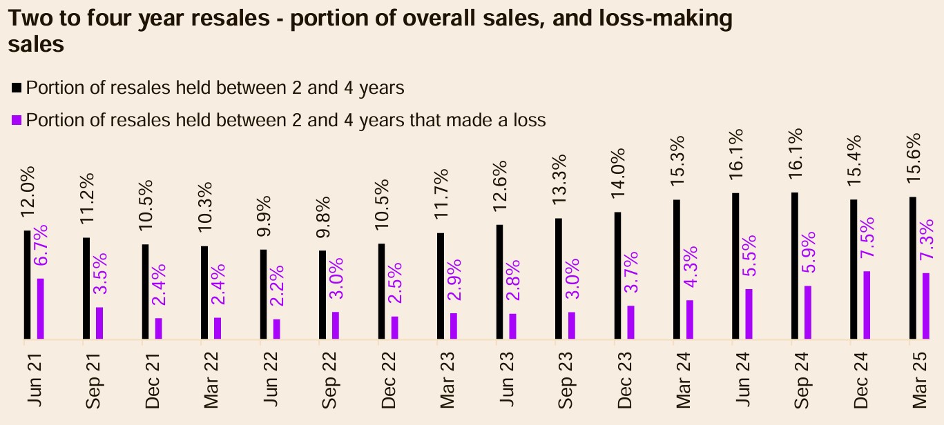 Short-term ownership, on the other hand, carries more risk. Properties resold after just two to four years in the March 2025 quarter saw a higher rate of loss-making sales (7.3%) compared to the national average of 5.1%.